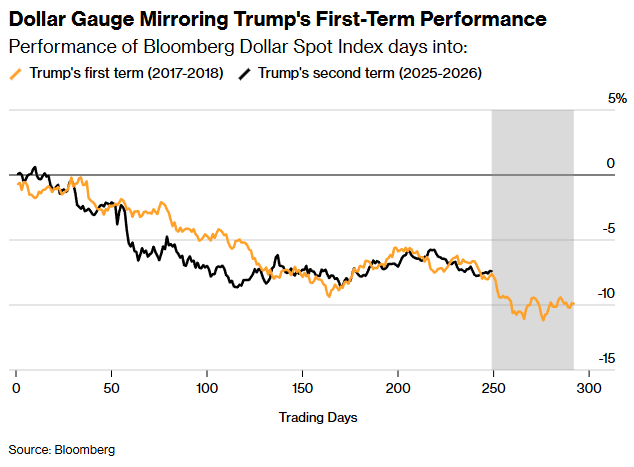 这也不时引发市场猜测,认为特朗普的举措可能危及美元作为全球主导货币的地位、或导致全球投资者减少对美国国债的配置。这种担忧在去年4月达到高点,当时特朗普的关税政策一度令市场陷入剧烈动荡。