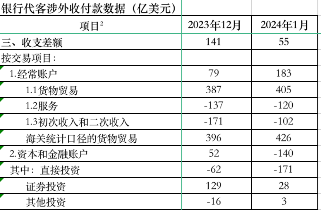 “我国外汇市场开局平稳,跨境资金流动总体均衡。1月份,企业、个人等非银行部门跨境收支顺差55亿美元,市场预期基本平稳,外汇交易理性有序。”国家外汇管理局副局长、新闻发言人王春英就2024年1月份外汇收支形势答记者问时表示。