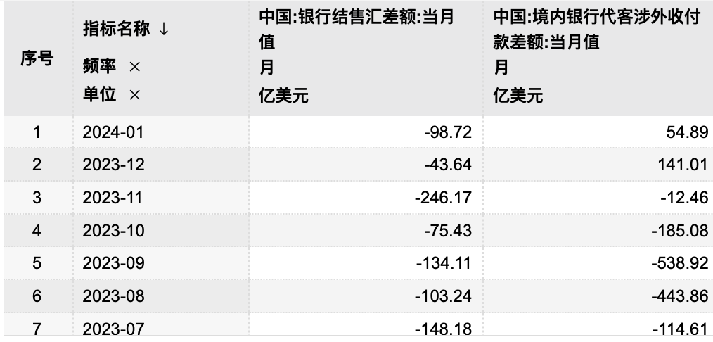 国家外汇局官网发布的银行结售汇数据显示,2024年1月银行结售汇逆差为98.72亿美元,较2023年12月扩大55.08亿美元;2024年1月银行代客涉外收付款顺差为54.89亿美元,较2023年12月缩窄了86.12亿美元,但仍延续了12月以来的顺差态势。
