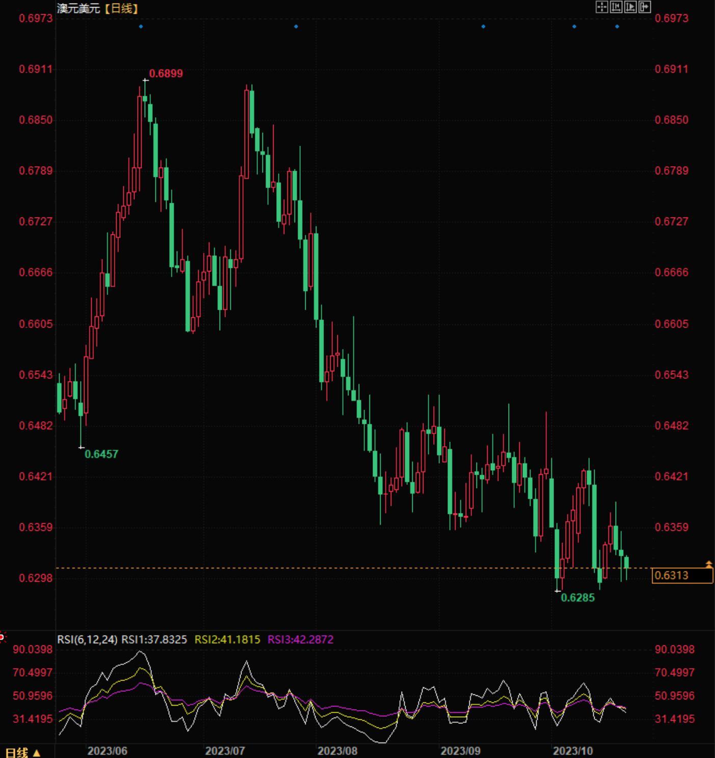 北京时间17:14澳元兑美元报0.6314/16