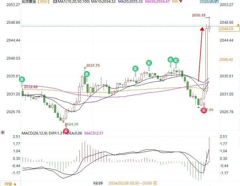 数据发布之后,现货黄金累计涨幅接近20美元,最高触及2050美元,为2月2日以来首次,当前报2048.29美元/盎司。美元指数短线回落15点,目前报103.7787。
