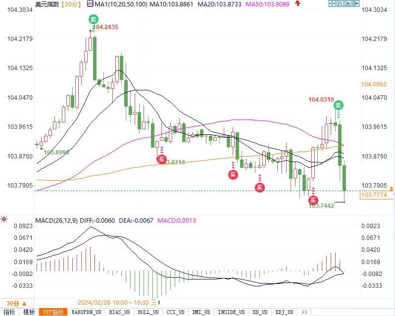 (美元指数30分钟走势图来源:易汇通)