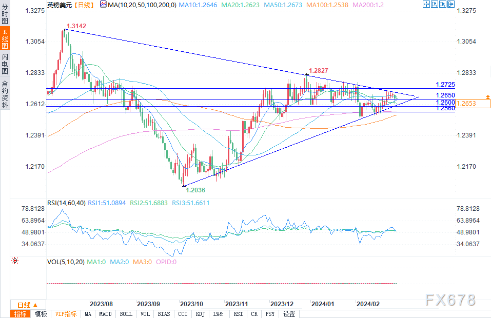 英镑兑美元周四先升后跌,盘中最高触及1.2670,在50日简单移动均线下方交易。若日收盘价低于50日简单移动均线,可能会加剧抛售压力,导致该货币对下跌至1.2600附近的趋势线支撑位。如果汇价持续走软,投资者的目光将集中在200日移动均线1.2570附近。