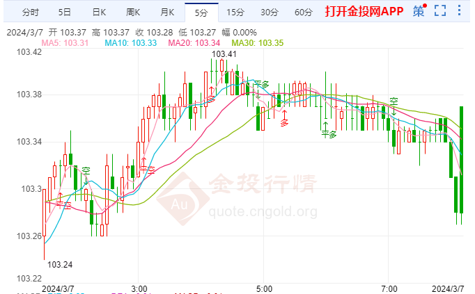上一交易日,美元指数收盘价收103.37,人民币兑美元即期收盘价7.1992,人民币对美元汇率中间价为7.1016,较前一交易日上调11个基点。今日人民币对美元汇率中间价为7.1002,上调14个基点。