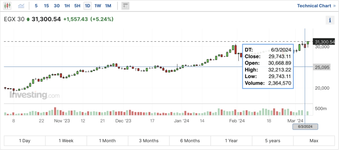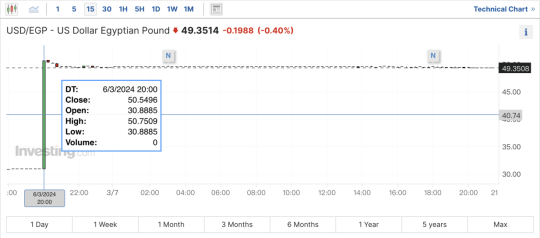 当地时间3月6日,埃及镑突发崩盘,跌破1美元兑50埃及镑关口。埃及证交所EGX 30指数当日大幅下挫,收跌3.02%,报29743.11点。