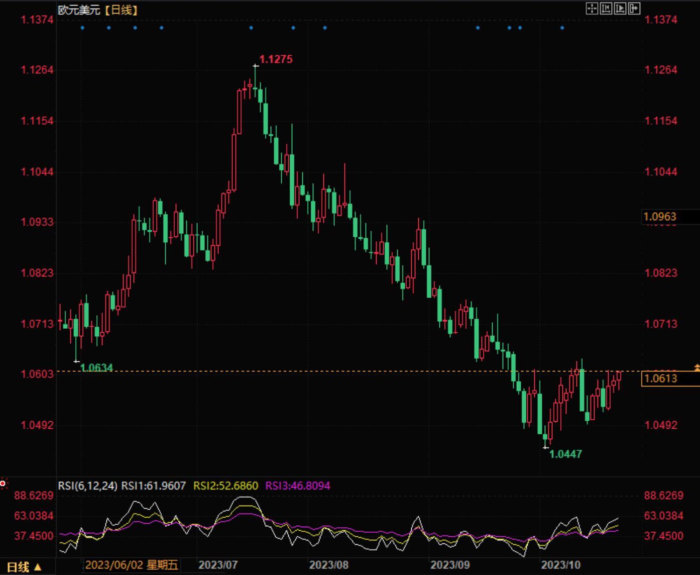 北京时间17:25欧元兑美元报1.0611/13。