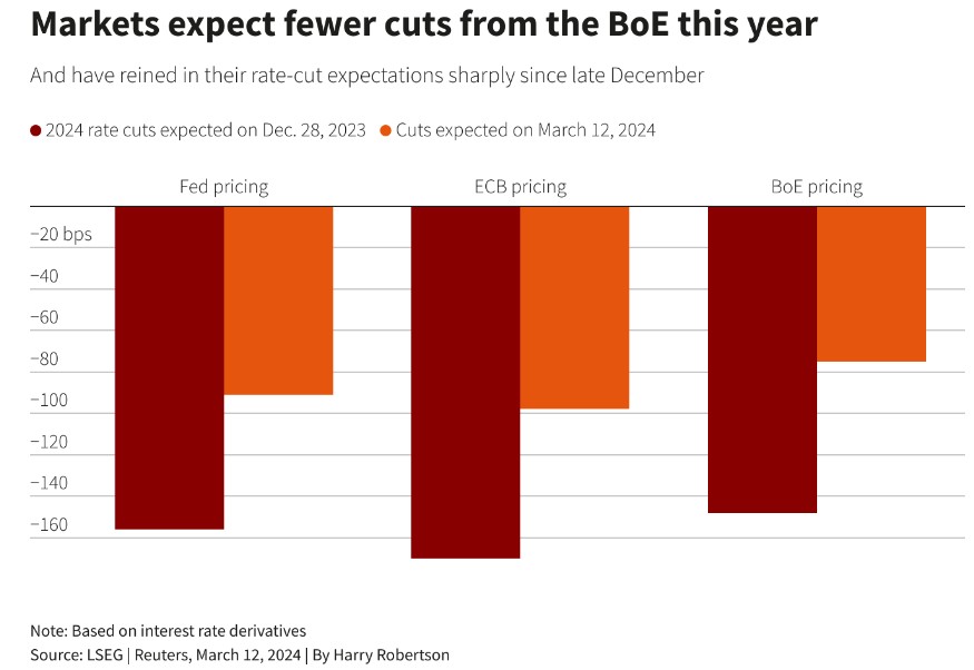 与2022年秋季不同,金融市场对预算案表现平静,这让投资者可以自由地重新关注经济,以及英国央行的货币政策可能与欧洲央行和美联储的政策有何不同。
