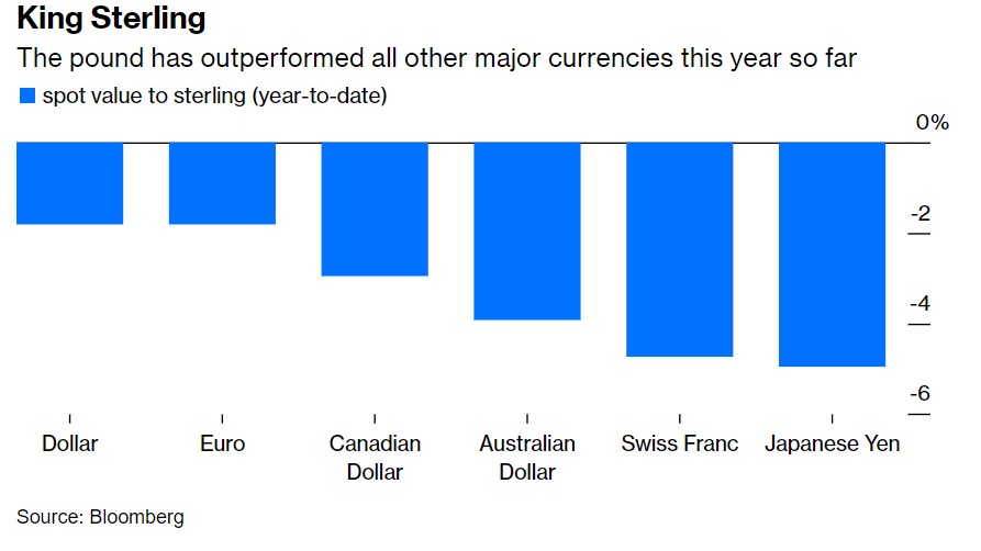 今年迄今为止,英镑的表现优于其他所有的主要货币