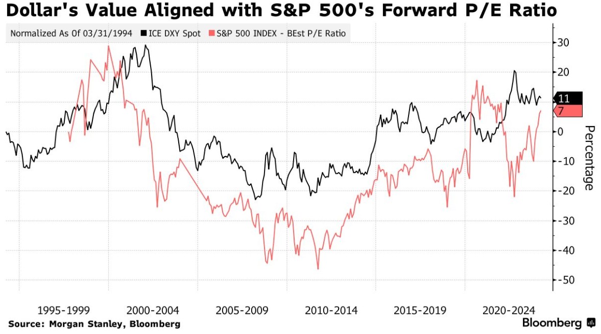 她在周一表示:“虽然相关性不是因果关系,但鉴于美元的牛市周期可能正在成熟,美元强势与市盈率的相关性值得关注。”