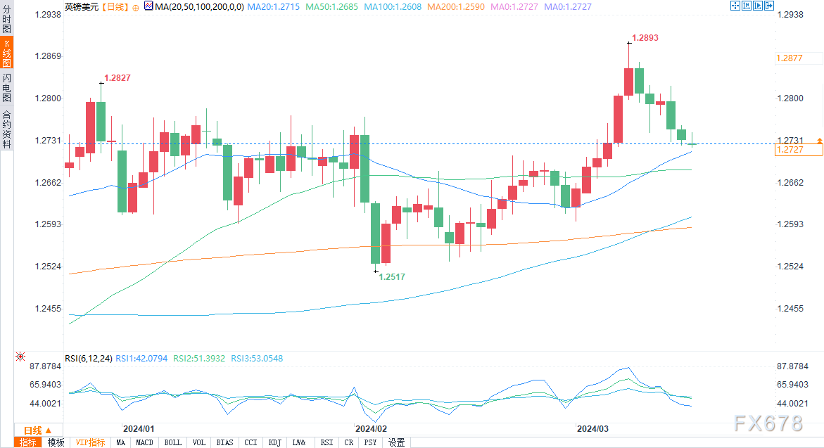 汇通财经APP讯——周一(3月18日),英镑/美元冲高受阻,最高触及1.2746,现已回落至1.2729。