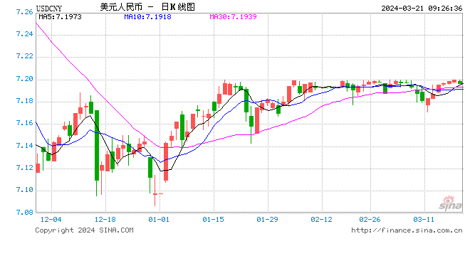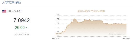 3月21日,人民币中间价报7.0942,上调26点,上一交易日中间价报7.0968。