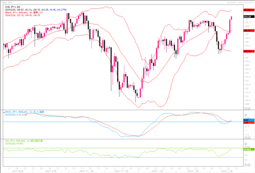 周二(3月19日),日元周二急跌至四个月低点,此前日本央行做出具有里程碑意义的决定,宣布结束负利率政策,而美元则在美联储即将做出利率决定前上涨。日本央行周二结束持续八年的负利率政策及其他剩余的非正统政策,告别多年来的超宽松立场。这是日本17年来首次加息,日本央行将隔夜拆款利率设定为新目标并引导在0-0.1%的区间内。央行并表示预计“宽松的金融环境”将暂时得以维持。因为大多数投资者此前已经消化了央行的这一转变,在消息公布后,日元兑美元在纽约汇市反而下挫逾1%,低见150.96。鉴于日本央行的前瞻指引相当谨慎,市场认为这是在给增加已存在的日元空头仓位开绿灯,实在不足以引发日本利率市场作出进一步的鹰派调整。这可能会继续对日元构成压力,因为日本和美国之间的利率差异依然明显。这也将吸引外国投资继续进入美国公债,使美元保持强势。本周,美联储等一系列央行的决议将主导汇市走势。最近一系列表现坚挺的美国经济数据表明,通胀仍然粘性十足,足以阻止美联储今年过多或过快地降息。因此相比美联储的利率决议,日本央行的决议则显得次要了。日线图上,美元/日元隔夜一根大阳柱快速穿越布林带通道中轨线,技术指标MACD形成金叉,显示套利交易再度活跃起来。美元/日元进一步上行,首要目标将是去年11月份中到达过的高位151.92。除非日本央行实施干预,否则美元的上行势头将会延续着。
