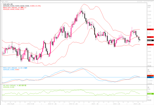 周二(3月19日),澳元/美元继续下跌0.85%,至近两周低点0.6504。周二澳洲央行一如预期维持利率不变,但对政策前景持更加谨慎的态度。澳洲央行维持利率在4.35%的12年高位,这并不意外,但略显鸽派,因为其中删除了不排除进一步加息的警告。相反,央行政策委员会表示,未来政策“不排除任何可能性”。利率期货走势表明,6月首次降息的几率约为43%,8月的几率升至74%。目前市场定价认为,在2024年放宽政策的可能性为44个基点,而在决议宣布之前为38个基点。澳联储3月会议上偏鸽的态度,恐将继续影响到澳元的表现。日线图上,澳元/美元跌落至布林带通道中轨线之下,且隔夜尝试跌穿过强支撑位0.6520,而且技术指标MACD形成死叉,RSI下行低落于均衡线之下,显示澳元空头力量有所增强。下方若进一步跌穿0.6500整数关口,进一步将考验0.6470附近的支撑。目前上方0.6630附近构成了较重的头部。