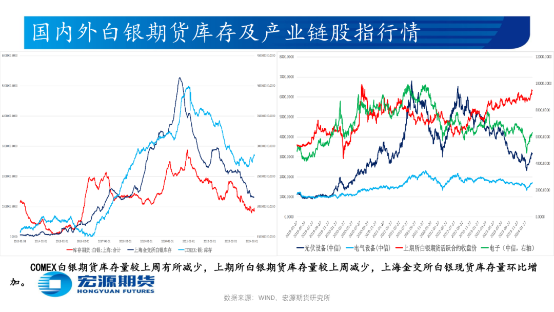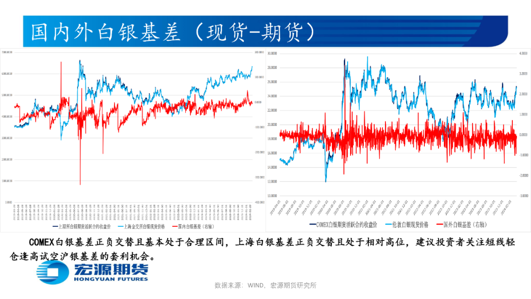 生产与消费端通胀顽固及经济与就业表现景气使市场担忧美联储推迟降息时点,或使贵金属价格仍存下跌空间,建议投资者短线轻仓逢高试空主力合约,关注伦敦金2000-2100附近支撑位及2200-2300附近压力位,沪金480-490附近支撑位及510-520附近压力位,伦敦银21-22附近支撑位及25-26附近压力位,沪银5400-5700附近支撑位及6300-6500附近压力位。