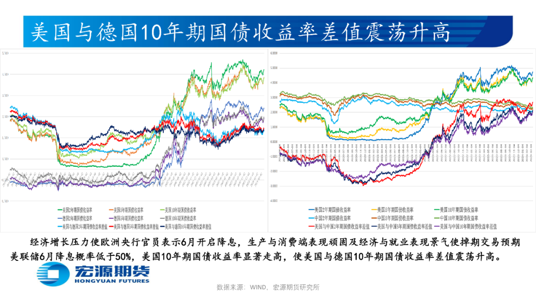 欧洲央行3月暂停加息使主要再融资利率保持4.5%,资产购买计划APP以可预测的速度下滑,并考虑下半年以每月减少75亿欧元的速度退出将持续至2024年底的紧急抗疫购债计划(PEPP)再投资。欧元区2月调和消费者物价指数CPI年率为2.6%低于前值但高于预期,叠加欧洲央行行长拉加德表示夏季或降息一次,使市场预期欧洲央行6月开启降息且年内或降息4次。