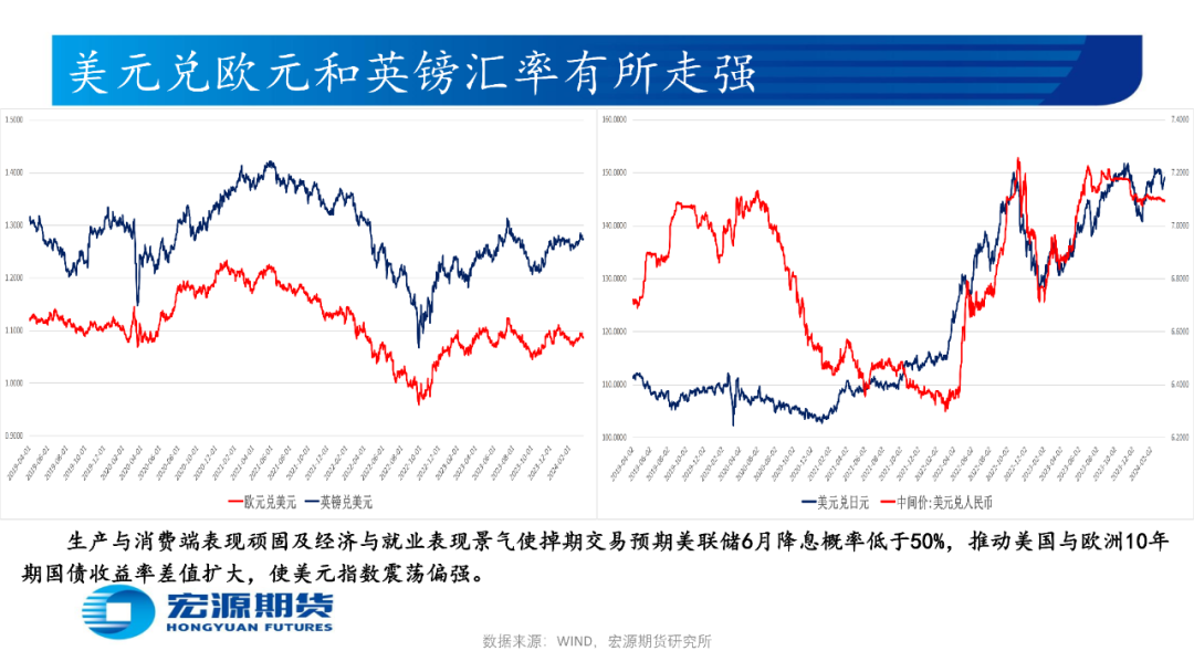 日本央行3月将基准利率由-0.1%上调至0-0.1%,取消收益率曲线控制政策YCC,取消购买日股ETF和房地产投资信托基金REITs,并制定了取消公司债券和商业票据购买的计划,下调1年期以上国债购买上限或暗示二季度放缓购买日本国债速度,但因继续进行固定利率购买国债操作以维持货币宽松环境(4月四次买入4000-5500亿日元5-10年期国债),使美元兑日元再次走强。