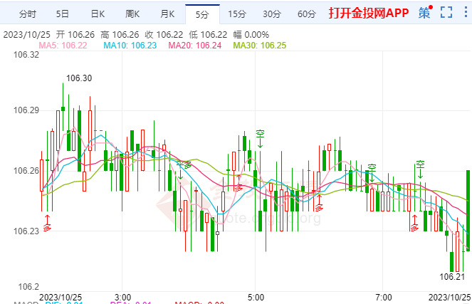 4.美元指数DXY短线走高10余点,日内涨超0.50%,现报106.16。美元指数短线走高15点,现报106.17。