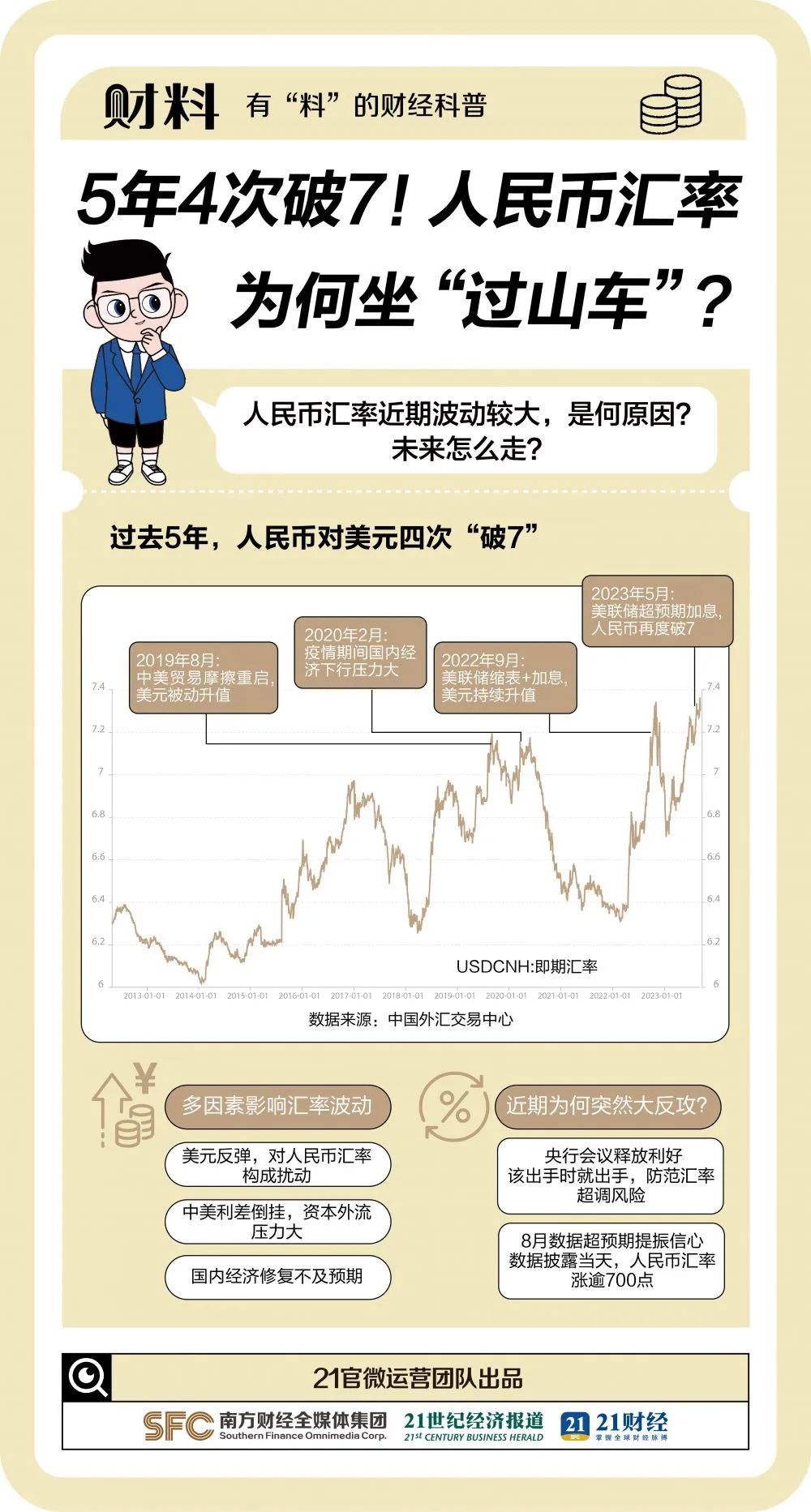 据21数据新闻实验室统计,人民币汇率在波动中调整,多次探底与回稳。近年来人民币汇率已经四次破7,人民币汇率坐上“过山车”背后有何原因?央行管控汇率的工具箱又有哪些大招?