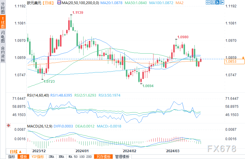 欧元/美元徘徊在枢轴点1.0855下方。