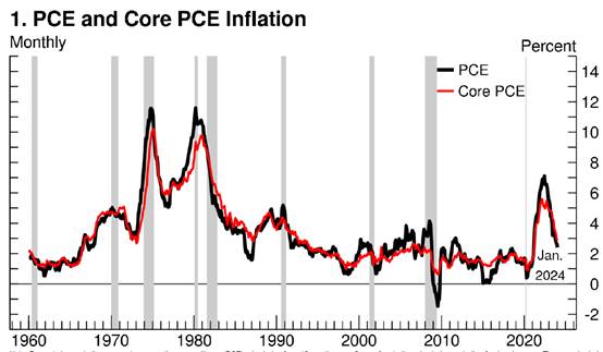 不过,Cook的鹰派态度并非主流。3月份的美联储利率决议点阵图显示,大部分票委仍将4.5~4.75%看做2024年的最终利率区间,意味着年内仍有三次左右的降息动作。通胀率角度看,美国的PCE年率和核心PCE年率双双下跌,最新值早已脱离2022年7%以上的高位水平。美联储的货币政策有两大目标,其一是促进就业,其二是保持物价稳定。对于第二个目标,PCE数据的稳定下降已经说明问题得到了解决。