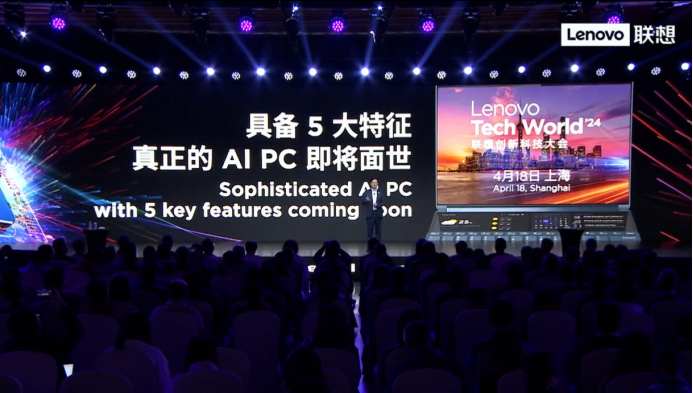 4月1日,联想集团2024/2025财年誓师大会在北京举行。联想集团董事长兼CEO杨元庆称,4月18日,将在上海举行Tech World联想创新科技大会,具备5大特征的真正意义的AI PC将在中国市场率先面世!