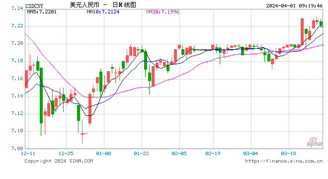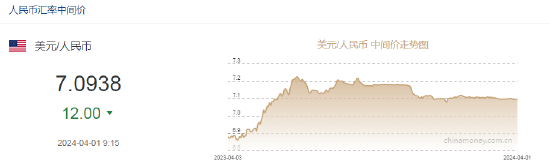 4月1日,人民币中间价报7.0938,上调12点,上一交易日中间价报7.0950。
