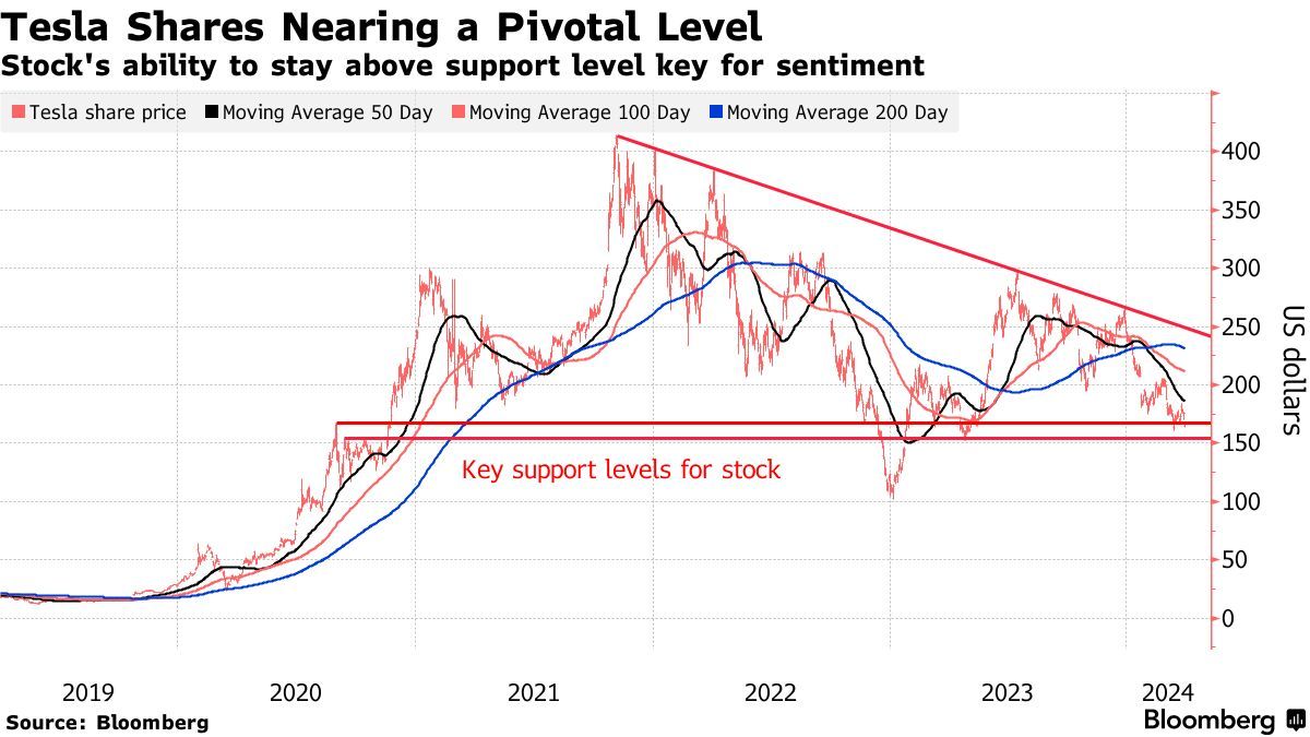 Miller Tabak+Co首席市场策略师Matt Maley表示:“这(150美元)不仅是去年4月以来的最低水平,也是我们发现该股八个月下行趋势通道的底部。因此,能否守住该水平对特斯拉未来数天或数周的走势而言将极为重要。”
