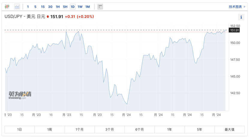 随着国际资本的大举做空,日元正在逼近34年来的低点,已然接近日本财务省可能的干预线152。
