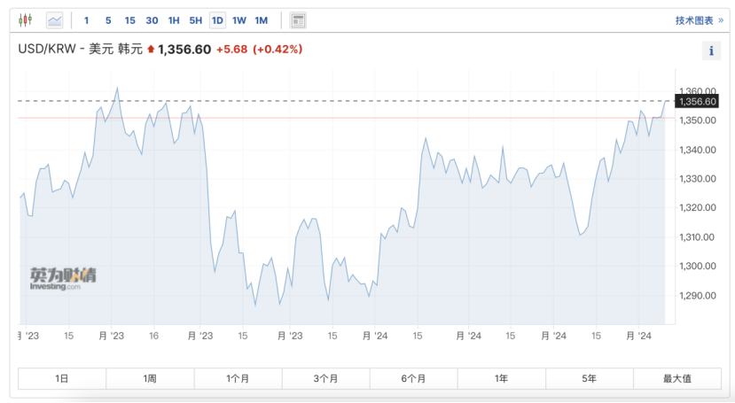 近期,韩元、瑞士法郎等G10非美货币正在持续贬值。其中,美元兑韩元汇率4月8日一度升至1356.84;美元兑瑞士法郎一度升至0.9065。