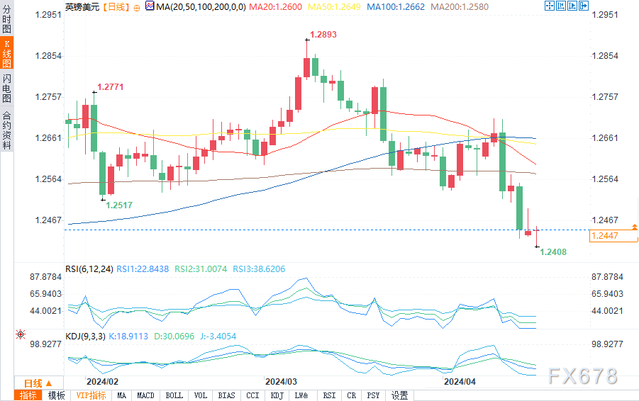 卖家将寻求将跌破4月低点1.24的损失扩大至2023年5月低点1.23。
