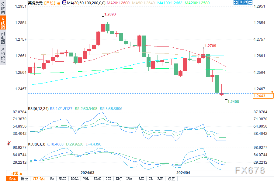 英镑/美元周一小幅下跌,但维持在1.2435支撑位上方的位置。为了提振市场对英镑的信心,保持这一技术底部是至关重要的;如果不能阻止崩盘,可能会导致回调至1.2325。如果行情进一步走弱,空头可能会有勇气在1.2040附近向2023年10月的低点发起攻击。