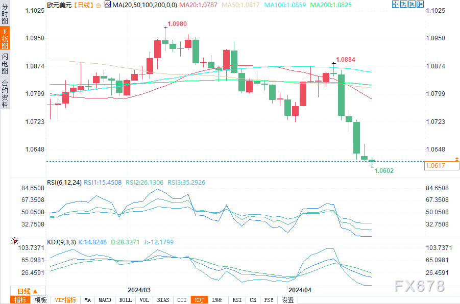 汇通财经APP讯——周二(4月16日)欧盘时段,美元指数小幅攀升,盘中报106.33,涨幅0.11%。以下是对欧元/美元、美元/日元、英镑/美元三组货币的技术分析。