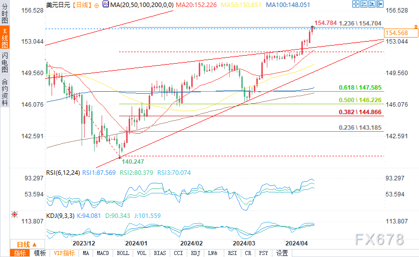 总体而言,日本干预的风险以及市场持续的超买状况可能导致美元/日元在未来几个交易日失去动力。尽管如此,任何放缓都不会影响美元/日元的积极趋势,除非空头将价格压低至150.80。