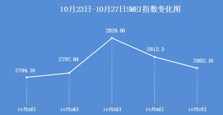 SMEI指数本周报于2802.16点,较上周下跌18.91点,跌幅0.67%。