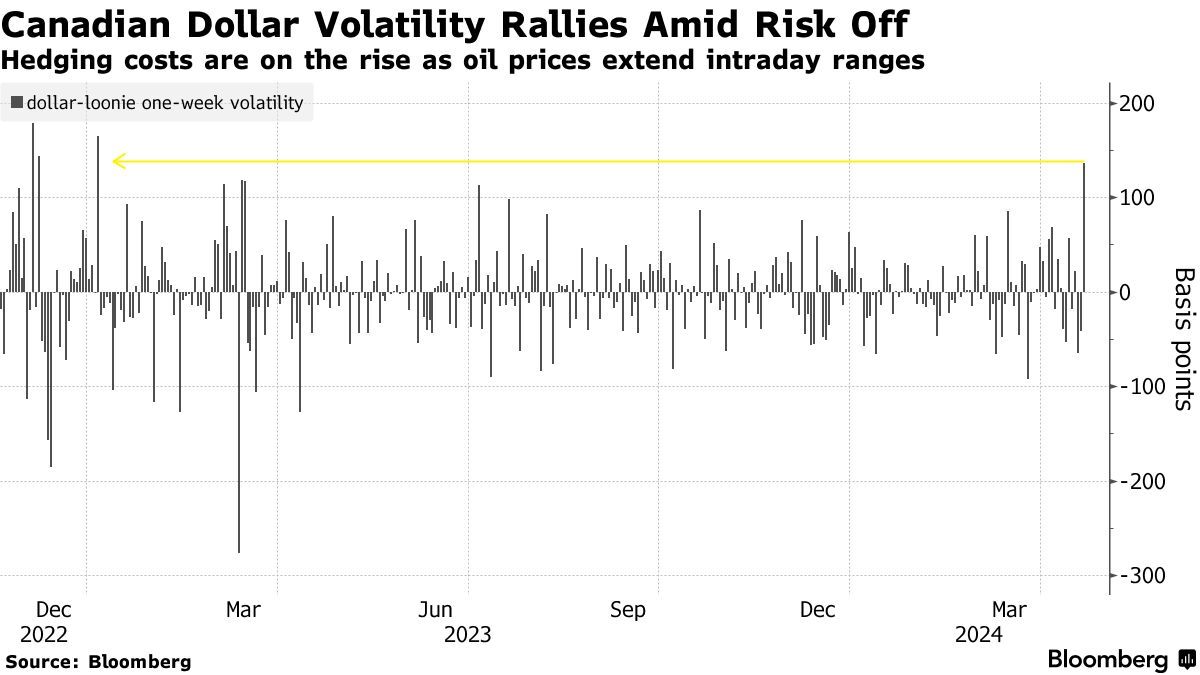 由于对中东地区紧张局势可能进一步升级的担忧,外汇市场进入全面避险模式,交易员纷纷在现货和期权市场寻求避风港。在报道称以色列疑似对伊朗发动报复袭击之后,美元兑除了瑞士法郎和日元之外的十国集团货币均走高,Bloomberg美元现货指数在过去八天内第七次上涨。