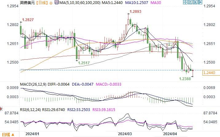 北京时间4月19日16:37英镑兑美元报1.2440/40