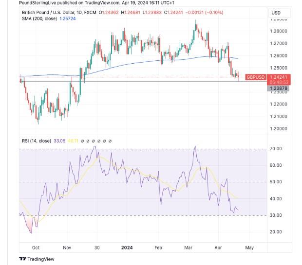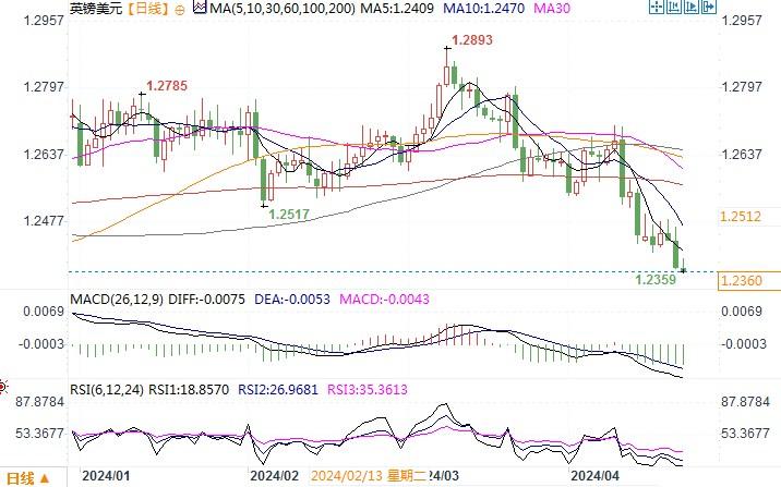 北京时间4月22日15:31英镑兑美元报1.2360/61