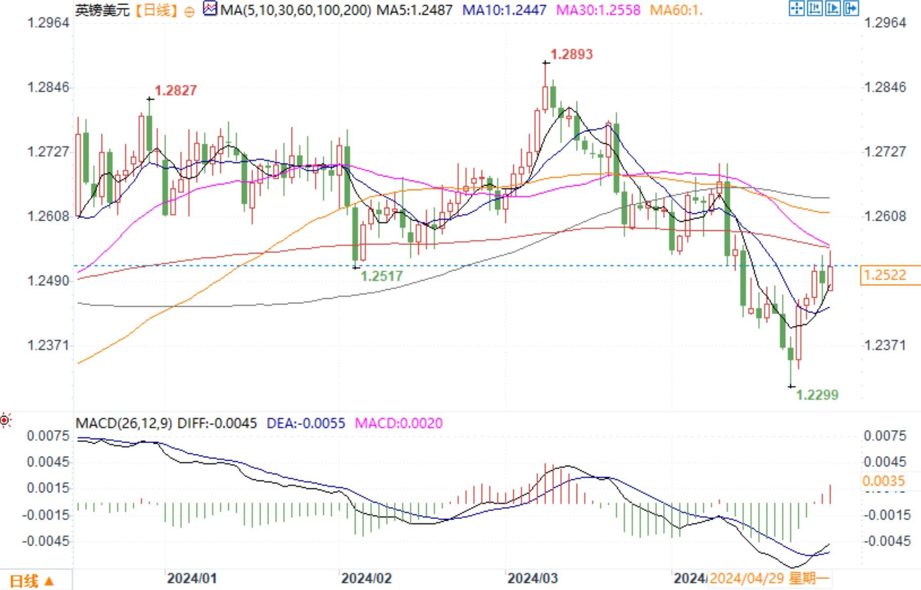 北京时间4月29日14:55英镑兑美元报1.2522/23