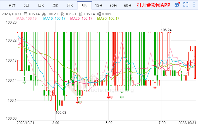 北京时间周二(10月31日)亚盘开盘,美元指数交投于106附近,美元指数周一走软。主要非美货币对美元涨跌不一,欧元/美元交投于1.0611附近;欧元兑美元周一继续扩大涨势,升向1.0630,英镑/美元徘徊在1.2160附近;英镑兑美元周一突破1.2170,美元/日元交投于149.31附近;美元兑日元周一回升,但仍承压于150下方。今日基本面关注21:00美国8月FHFA房价指数月率和21:45美国10月芝加哥PMI及22:00美国10月谘商会消费者信心指数。