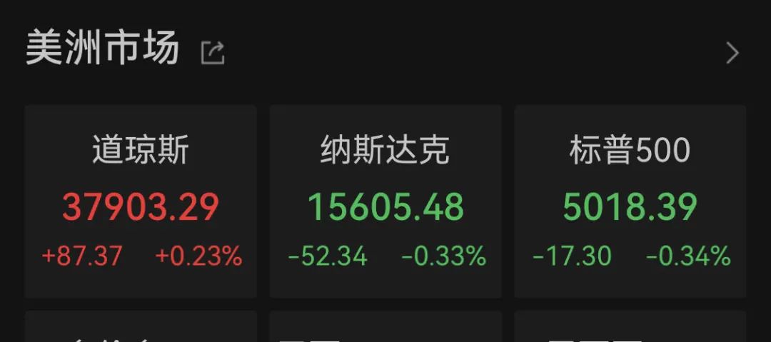 美股方面,美国三大股指收盘涨跌不一,道指涨0.23%,标普500指数跌0.34%,纳指跌0.33%。强生公司涨4.56%,波音涨2.18%,领涨道指。