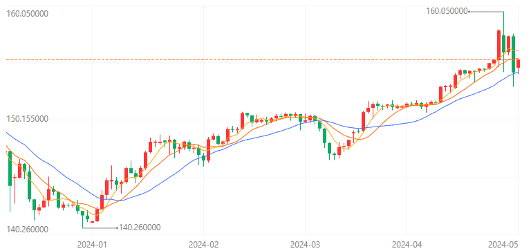 在美联储降息预期推迟等因素影响下,今年以来日元汇率持续下行。4月28日,日元兑美元汇率单日跌幅达到1.75%,创下今年以来的最大单日跌幅。29日,日元兑美元汇率一度跌破160,再创1990年4月以来新低。