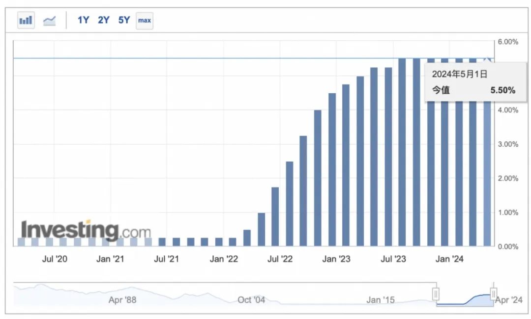 当地时间5月1日,美国联邦储备委员会公布最新利率决议,将联邦基金利率目标区间维持在5.25%至5.50%不变,符合市场预期。