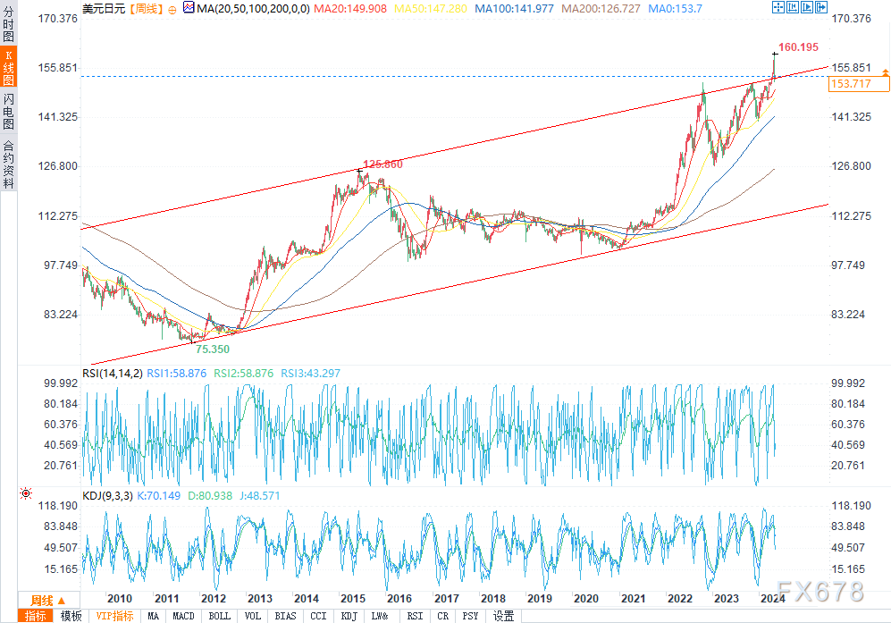 (美元/日元周线图来源:易汇通)