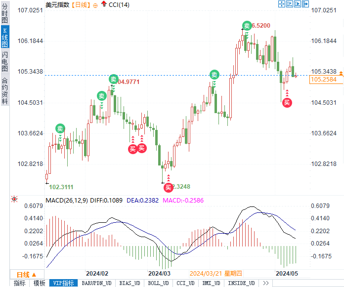 均线系统:包括位于105.396的50日均线和位于105.485的200日均线,徘徊在当前价格附近。均线系统的状态将为美元指数的短期走势提供线索。