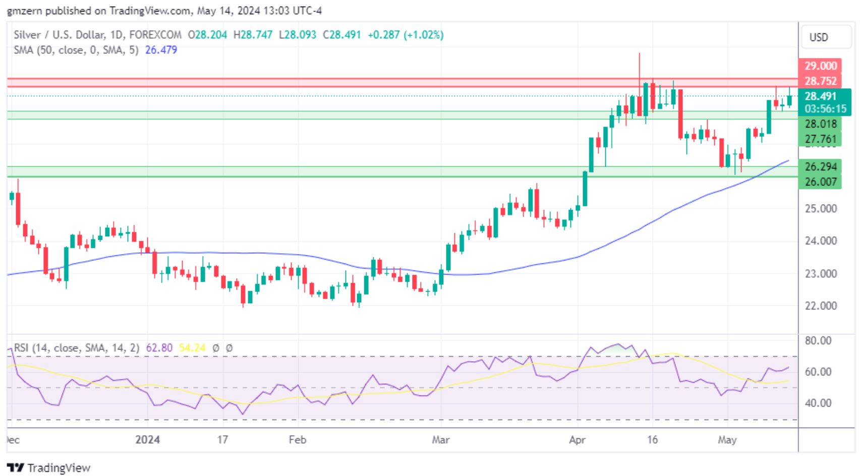 如果白银站稳29.00美元水平,将为其提供获得额外上涨动力的机会。
