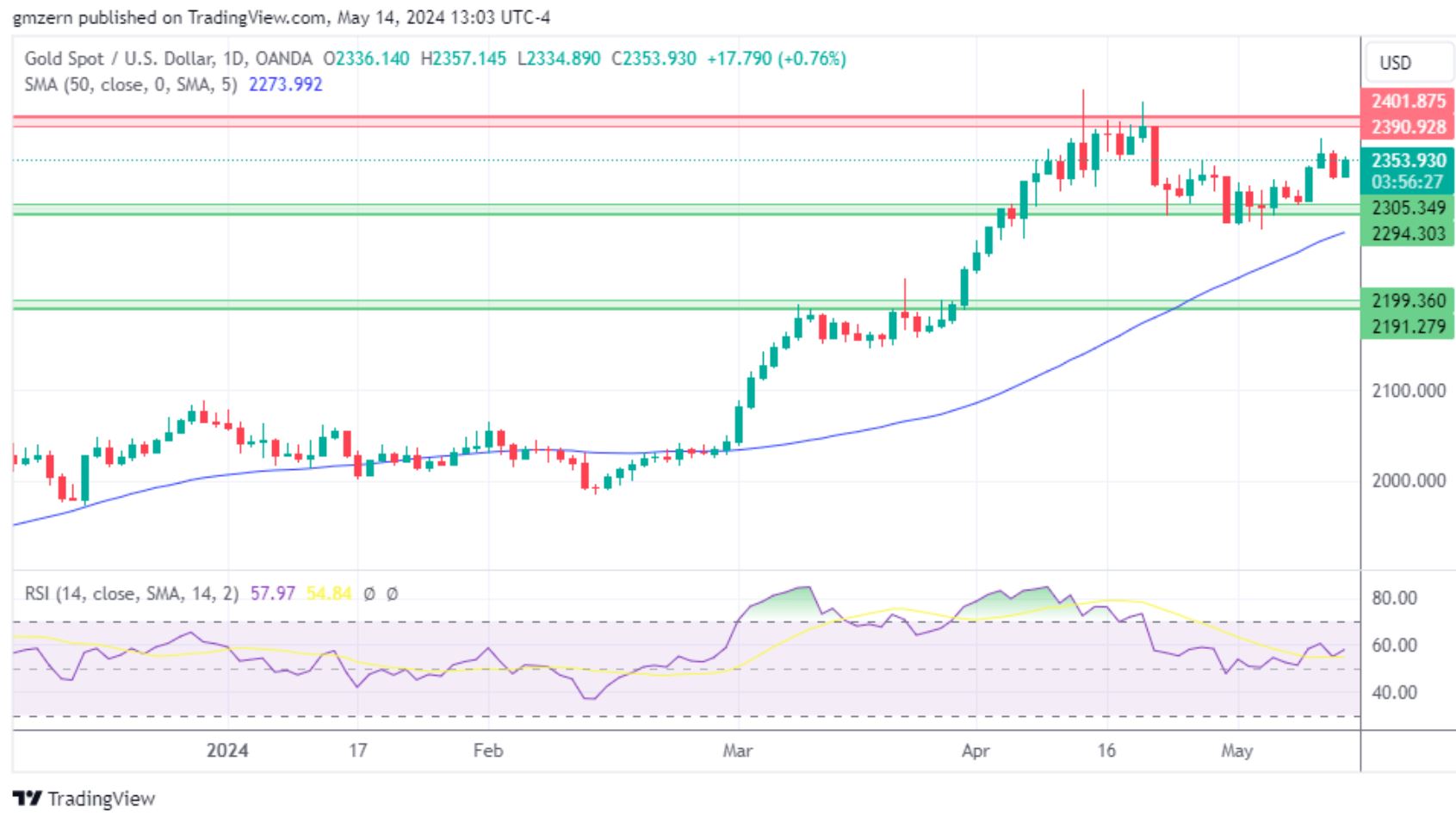 按照Zernov的说法,随着黄金保持在2350美元以上,将朝着2390美元至2400美元的最近阻力位发展。
