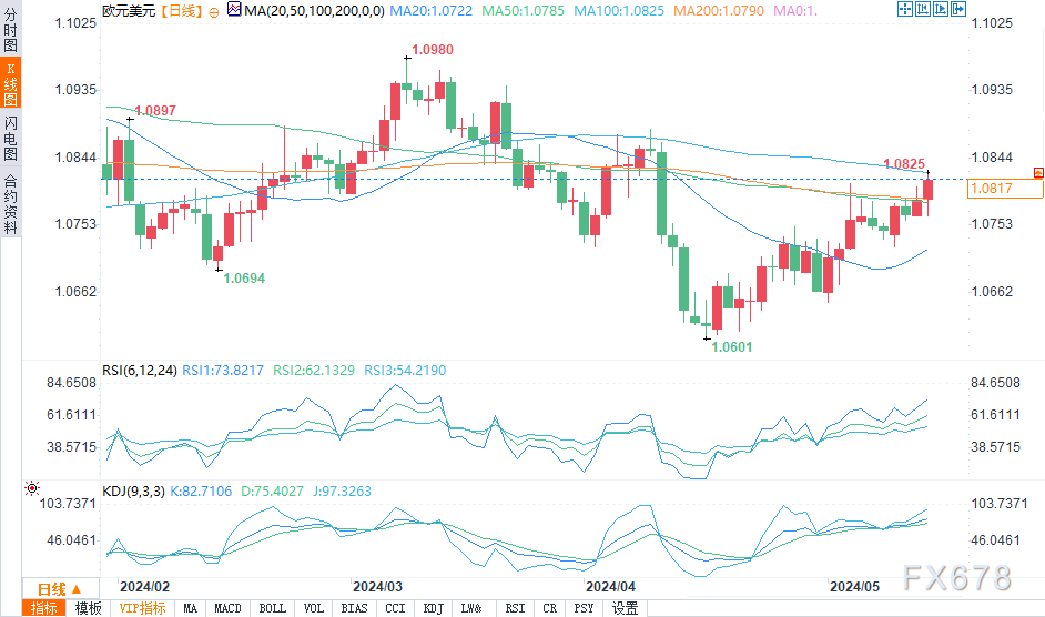 近期欧元/美元交易仍以4月低点以来的上升趋势为主导。它的下限直到1.07122才出现,远低于市场水平。