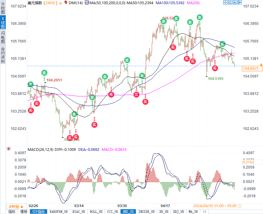 (美元指数4小时走势图,来源:易汇通)
