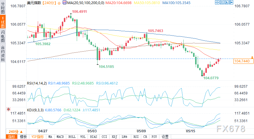 汇通财经APP讯——周五(5月17日)欧盘时段,美元指数报104.7564,涨幅0.24%。