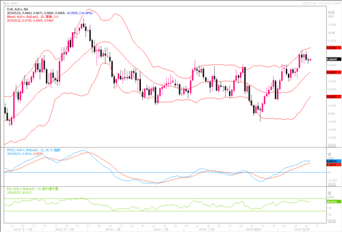 周二(5月21日),澳元/美元略跌0.2%,收盘在0.6664。周二澳洲央行会议记录略显鹰派,澳洲央行因通胀风险上升而考虑加息,但央行称通胀预期受控良好,令交易员松了一口气,随之澳洲央行下一步将会降息的预期有所升温。市场预计12月降息概率为50%,明年4月降息概率为85%,这令近期上升中的澳元颇受阻滞。但是澳元下行空间料有限,因为澳洲央行的利率立场与其他主要央行不同,澳元的高利率延续时间有望要比其他央行长,而且近期大宗商品价格上涨,似乎都成为提振澳元的影响因素。日线图上,澳元/美元短线处于冲高之后的调整之中,目前主要留意下方0.6450-0.6420区域的支撑,如果下破,则可能预示澳元此轮的上涨中断。相反若守住上述支撑区域,澳元/美元有望继续攀升,上方阻力位在0.6690-95、0.6710-15。